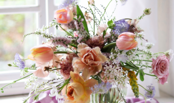 「束ねていると・・どんどん形が変わっていきます。」柔らかい茎は、手の温かさでクタッとしたり・・固い枝は、どこかへいったり・・実は、私もそうでした。変な力が入って、握力関係あるかと思うぐらい手も痛くなっていました。『ブーケって難しい!?』と、…